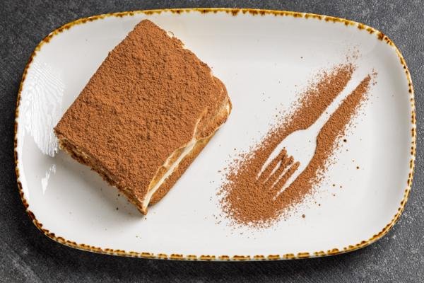 Coffee-soaked ladyfingers, rich mascarpone cream, and a dusting of cocoa powder.